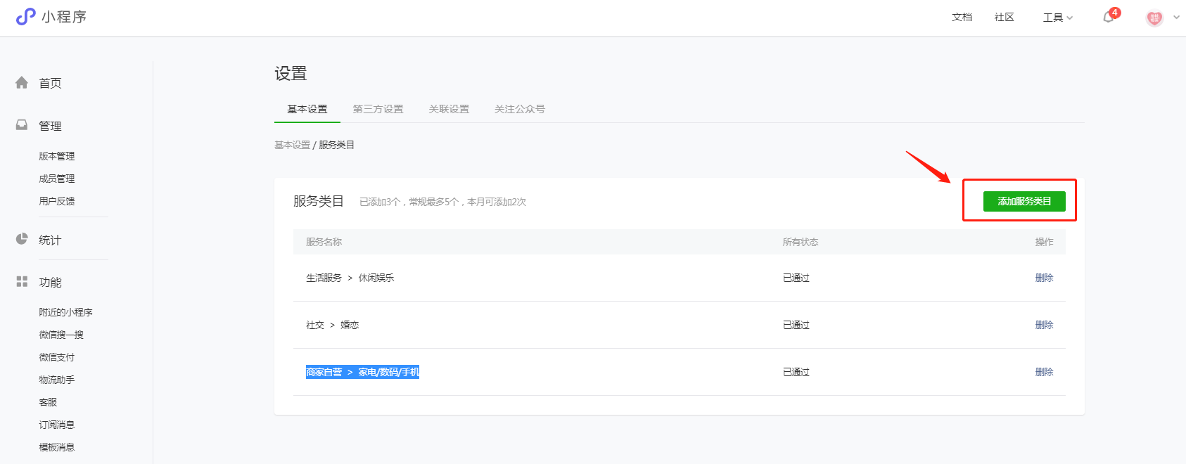 1、添加服务类目