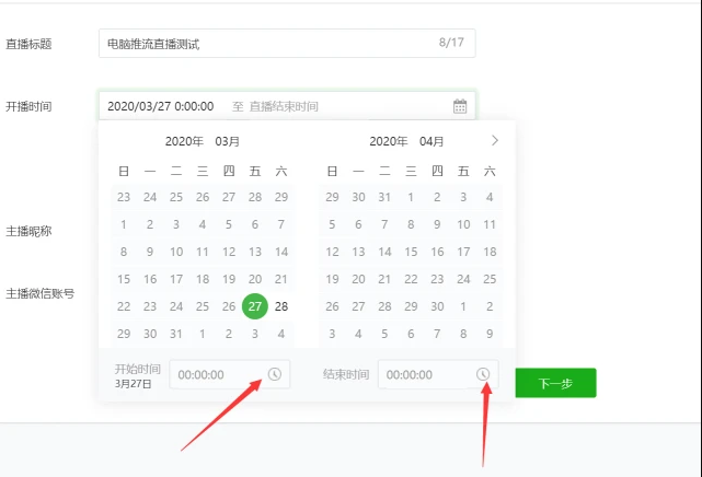 2、设置直播标题、时间、直播的微信号
