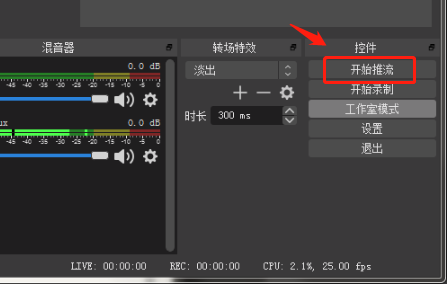 5、设置好场景内容后,**可以点击“开始推流”,进行直播。**