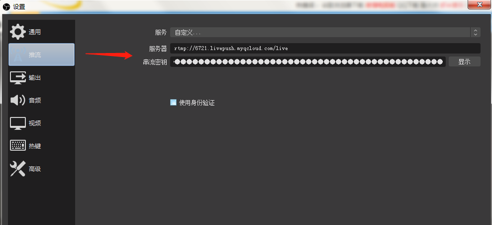 打开OBS页面,选择“设置”-“推流”-添加“推流服务器地址和串流密钥”,也就是腾讯直播里的rtmp地址、直播码。