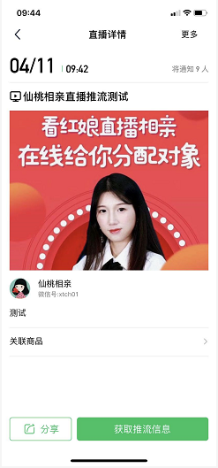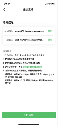 如新建直播间选择“推流直播”,在设置标题和封面图、简介后,点击“获取推流信息”。