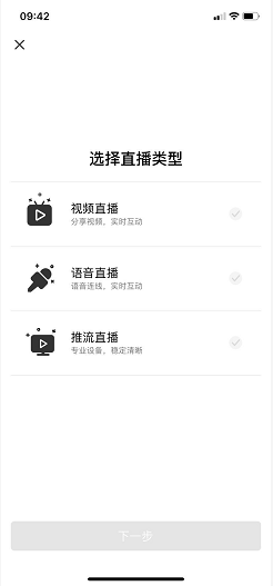 可以选择“**视频直播**”、“**推流直播**”、“语音直播”这个可以忽略。