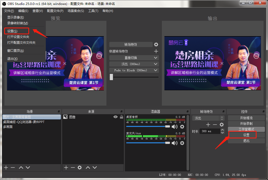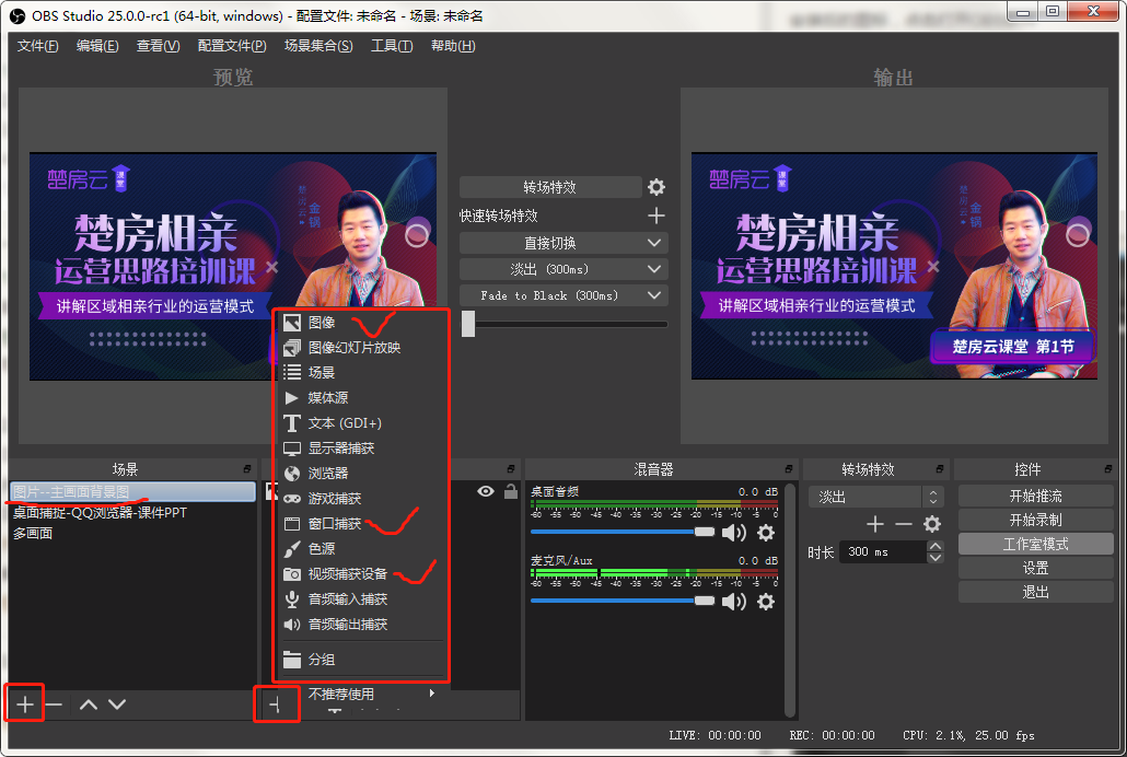 > 也可以做课件+桌面操作等进行直播(PPT网课、游戏直播)
