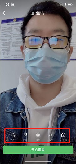 开播前选择“美颜”、“反转镜像”等设置后,即可开启直播