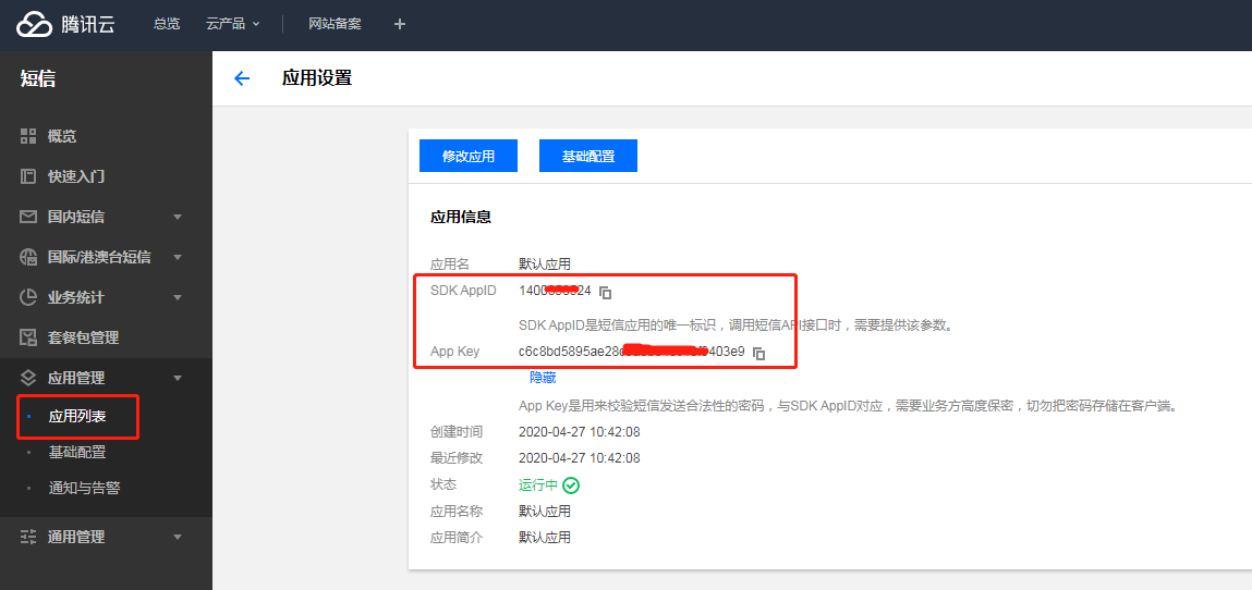 7、点击应用管理“应用列表”,点击查看应用的SDKAppID及AppKey