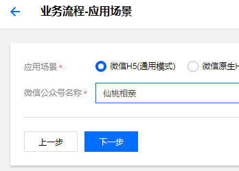 选择“微信H5、小程序服务”,填入公众号名称下一步,