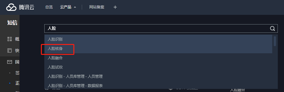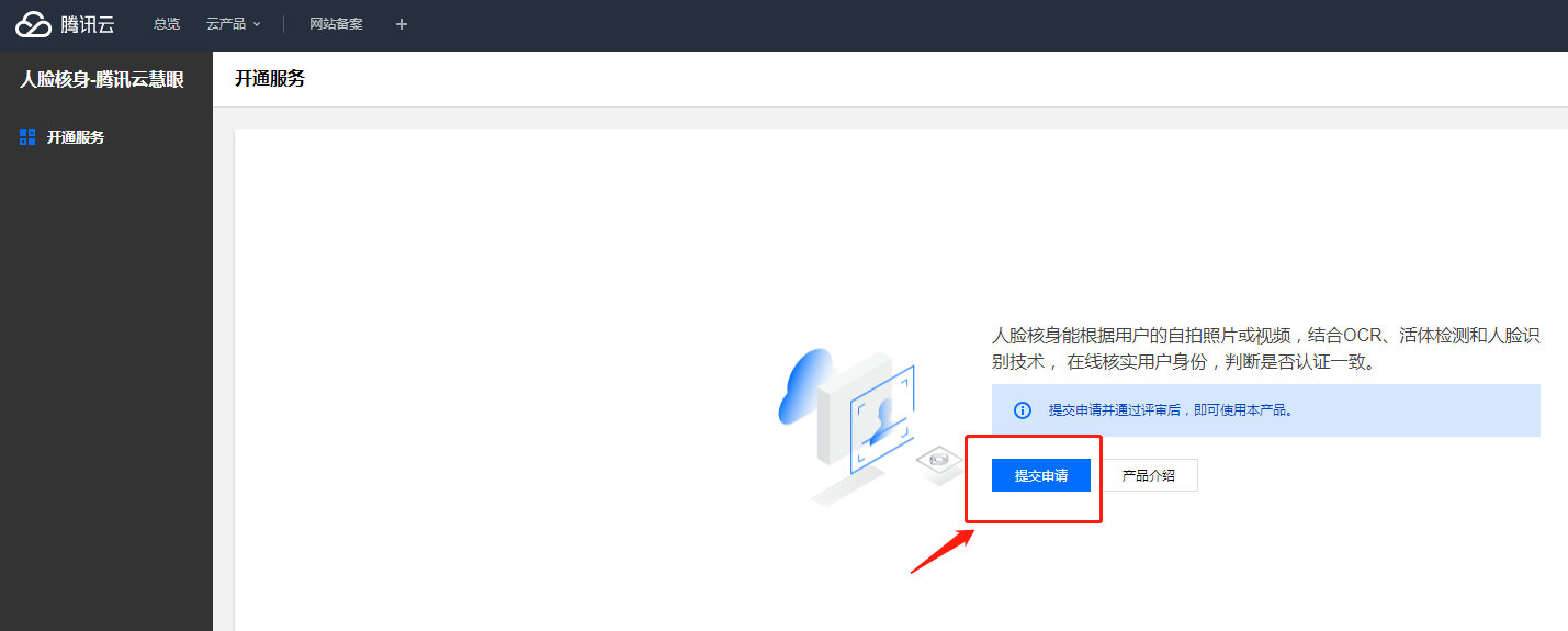 搜索云业务“人脸核身”,进入按提示提交开通申请