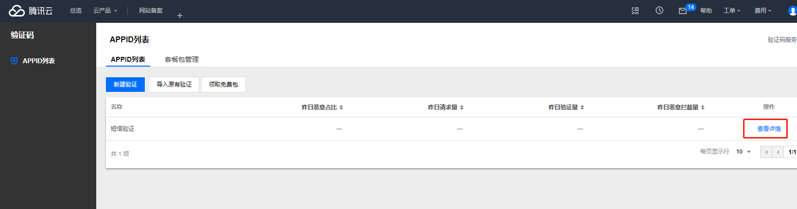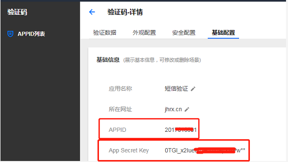 添加后天机查看详情,获取验证码的APPID、App Secret Key