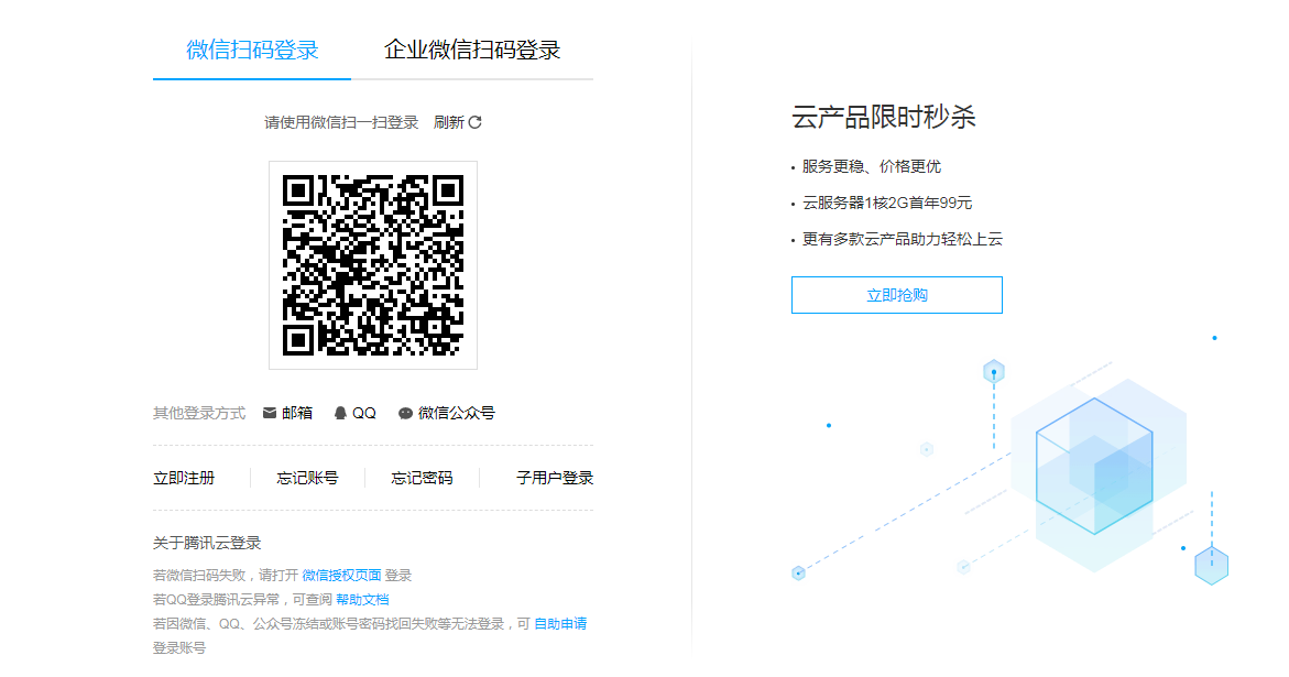 注册地址:[https://cloud.tencent.com/login](https://cloud.tencent.com/login)