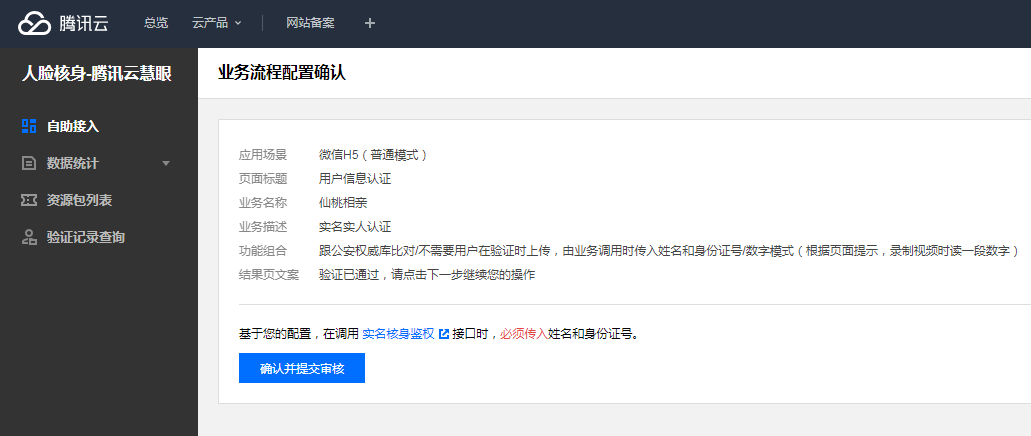 开通腾讯云“人脸核身”功能后,需要公众号对授权,在微信内支持认证。