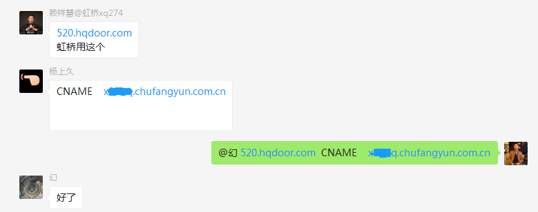 2、确定后发对接群,让技术配置服务器CNAME解析地址。