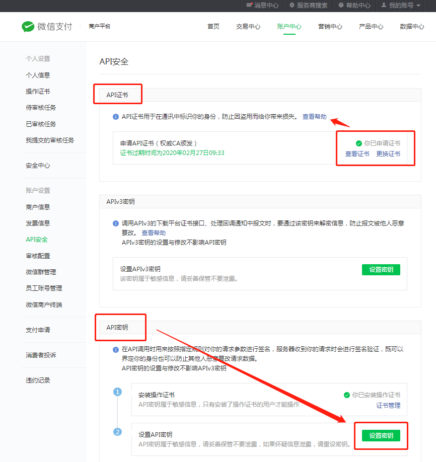 或者进行重置后获取,但会影响已使用其他平台,都需要同步更新密钥和证书。