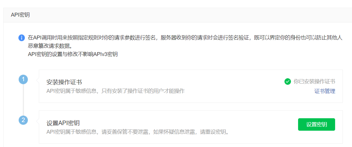 点击设置密钥,填入一个32位数字+字母组合的密钥。(验证安全密码)