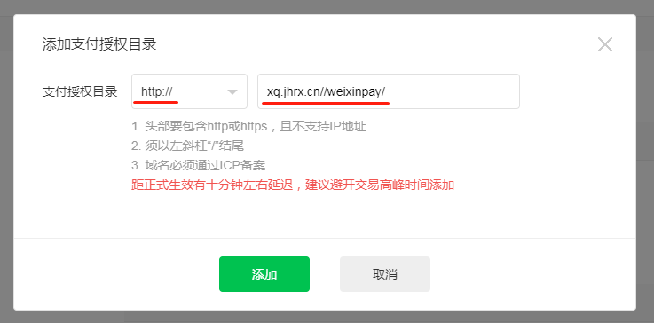 按对接表内提供的目录添加。目录:http://相亲域名/weixinpay/