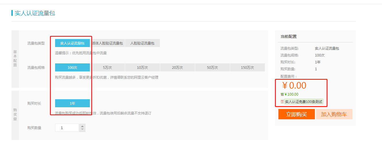另外阿里云的实名认证套餐可以免费领100次服务包。