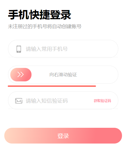用于用户注册时,使用滑动式验证方式"人机核验"避免被刷短信。