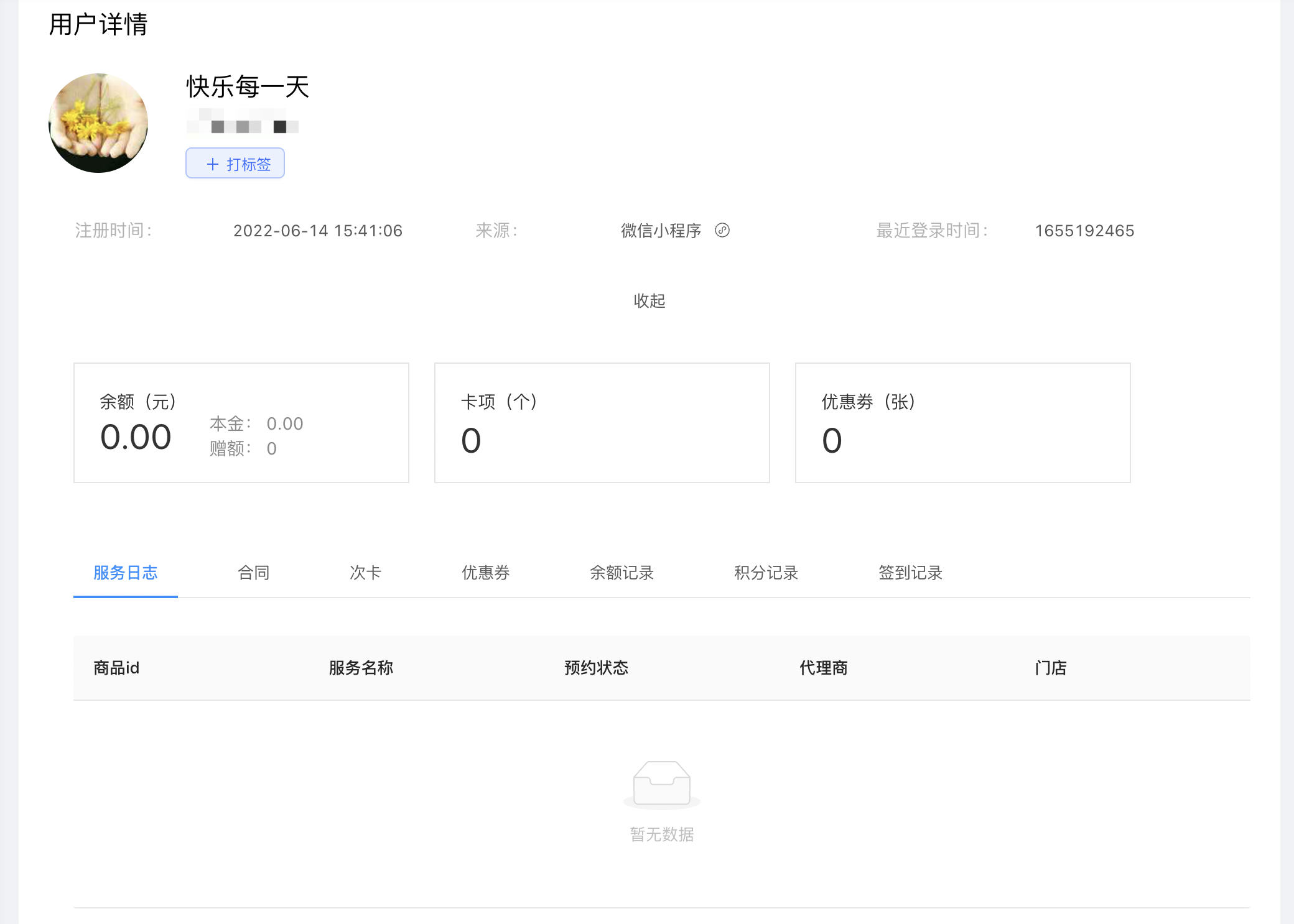 详情可以看到用户的详细信息,也可以为当前用户打标签