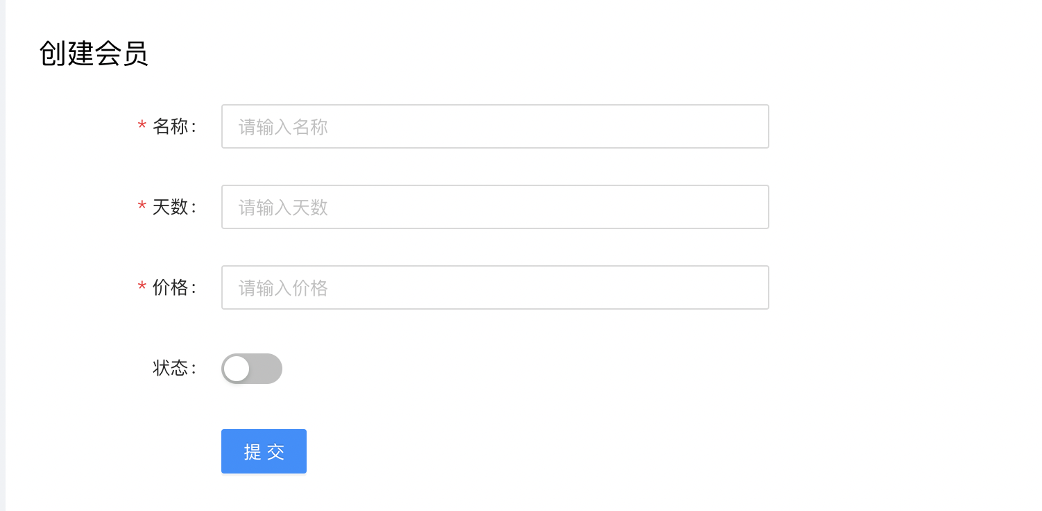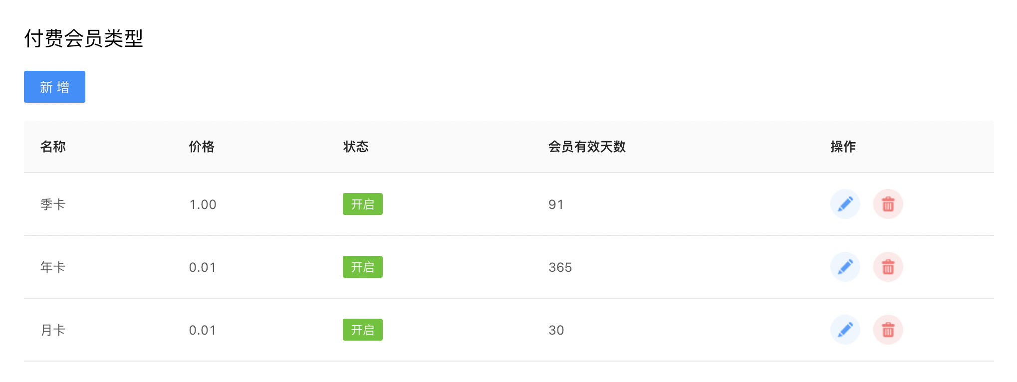 此页面用来设置会员有效期,价格