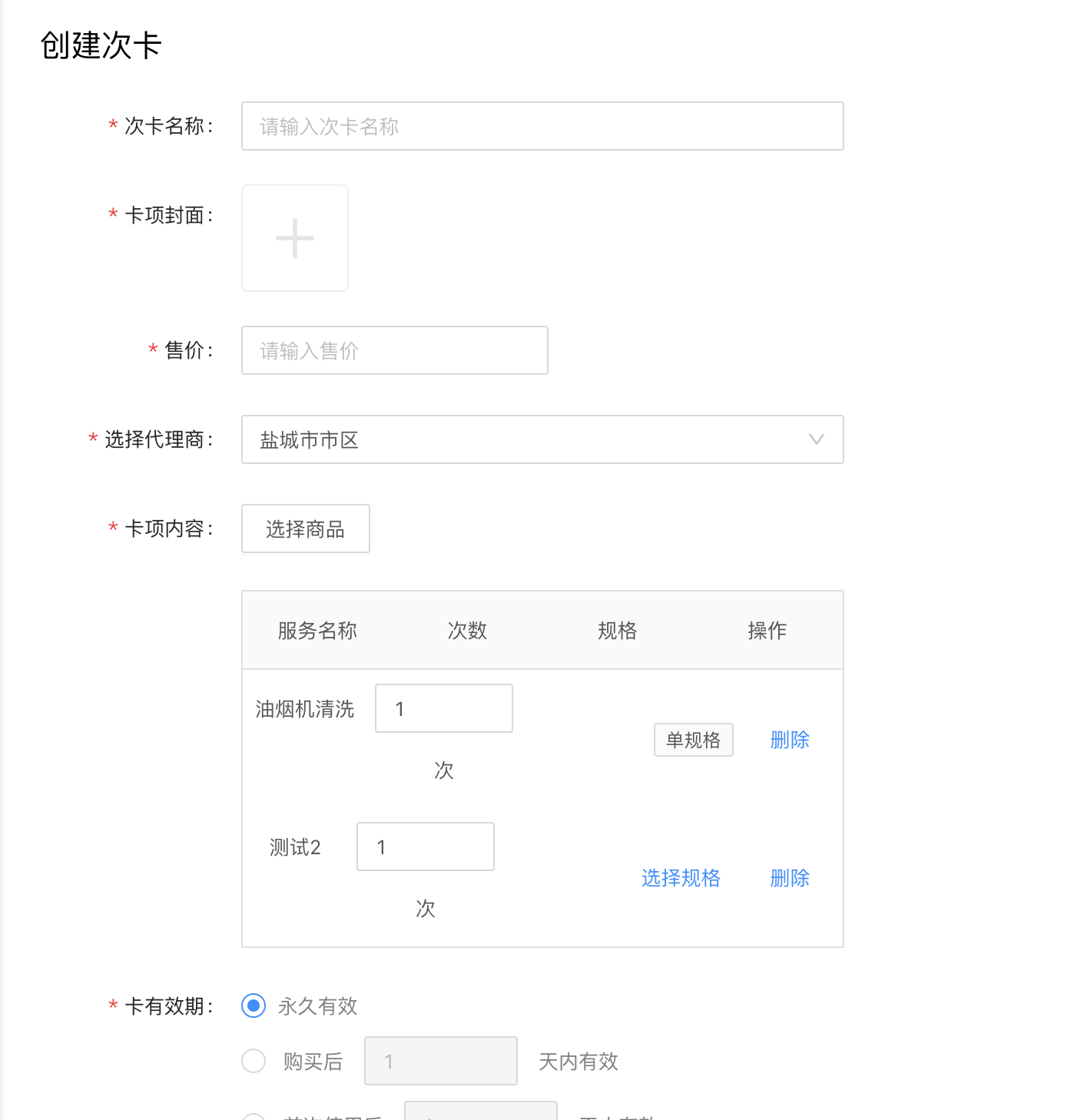 位置:营销管理 -> 营销中心 -> 次卡 -> 次卡列表