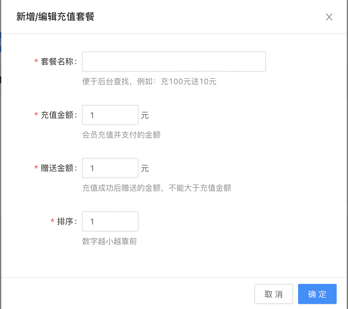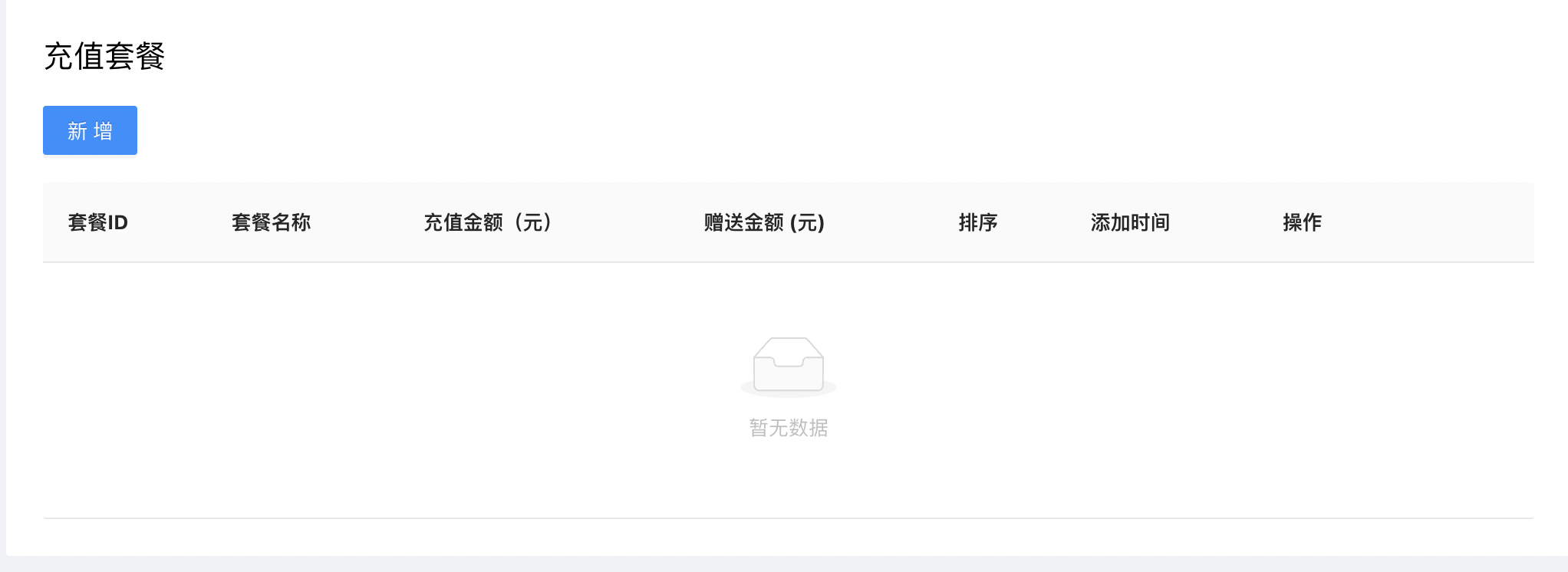 位置:营销管理 -> 营销中心 -> 会员储值 -> 充值套餐