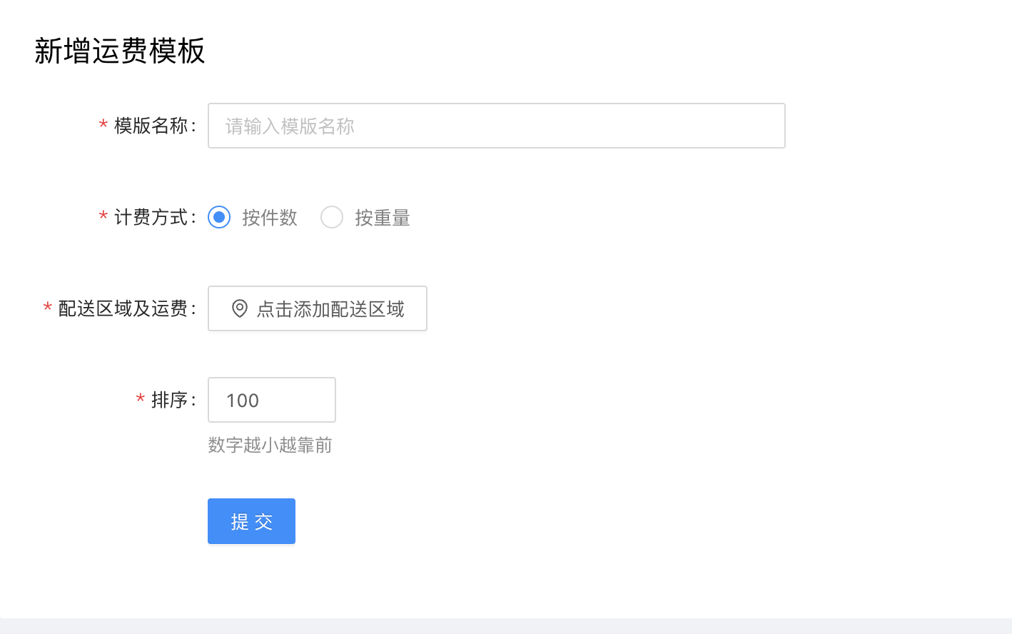- 运费模板