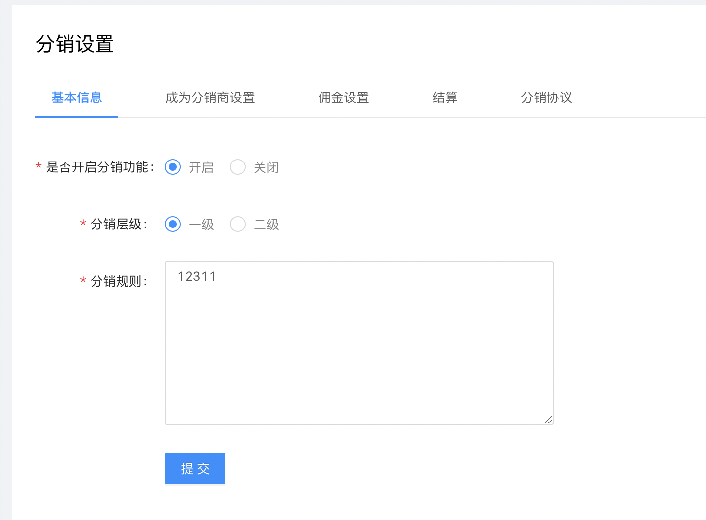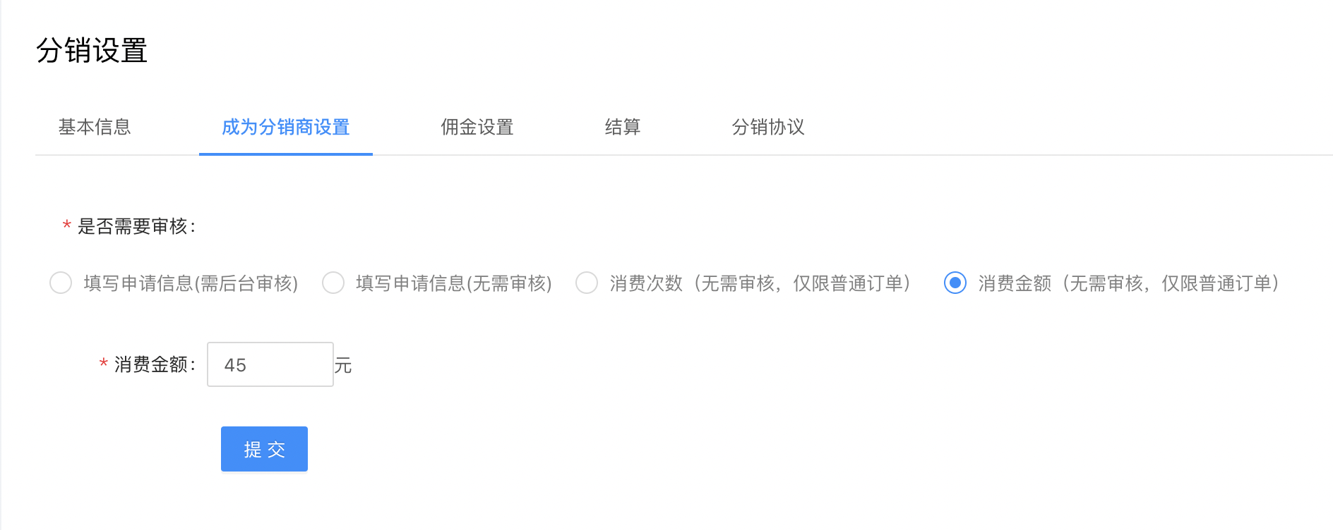 - 分销设置