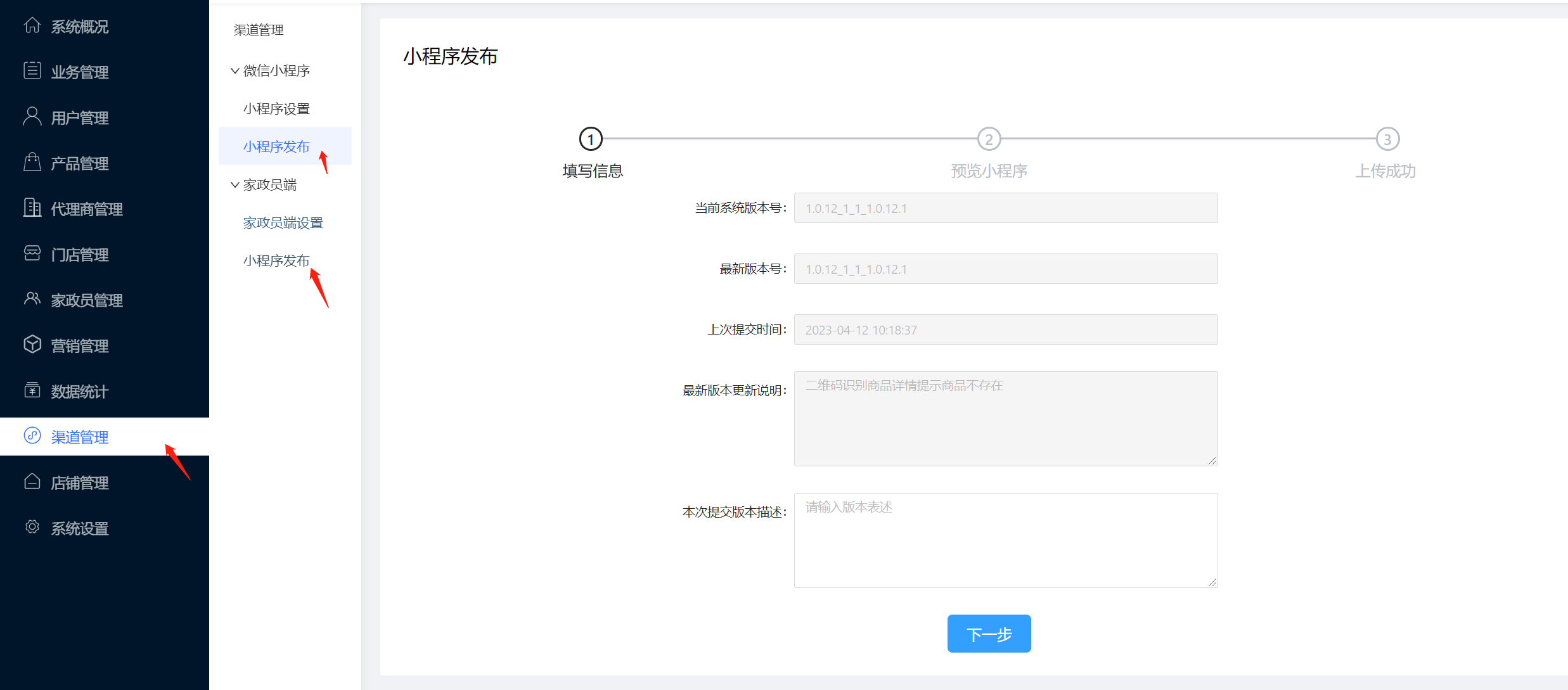 商户端后台-渠道管理-小程序发布