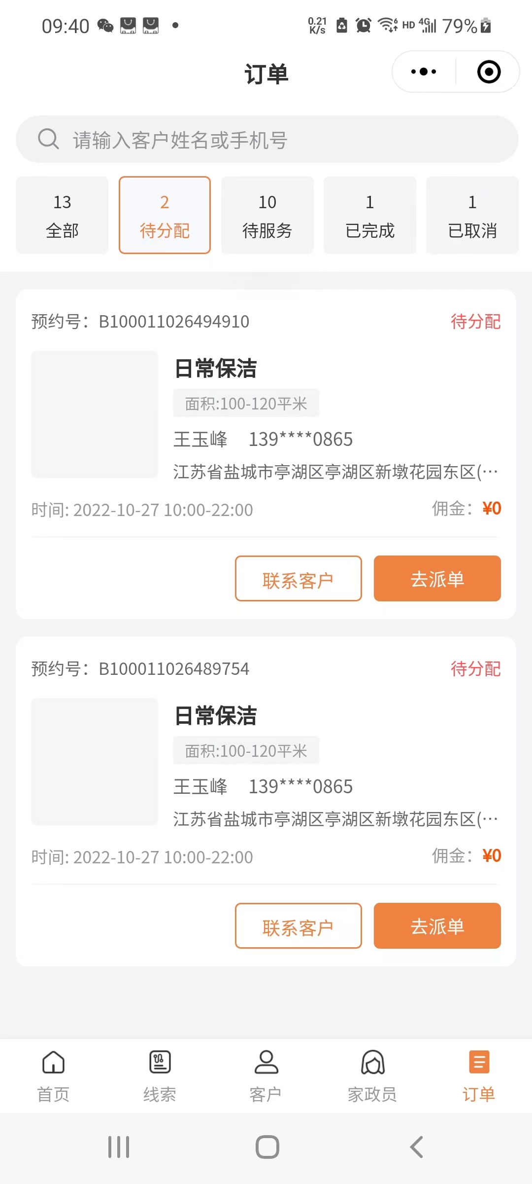 门店通过家政员小程序端负责具体的家政业务施工,店长派单、业务跟踪等。