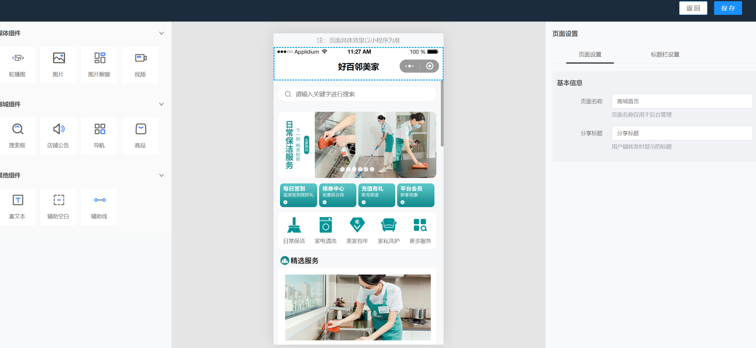 商户负责小程序的整体装修和账号管理,如首页布局,全局主题色配置。并可管理代理商账号。