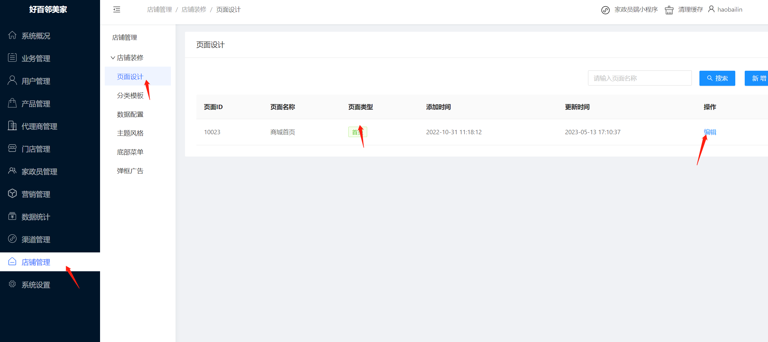 登录商户端后台(你的域名/store),点击店铺管理-店铺装修-页面设计