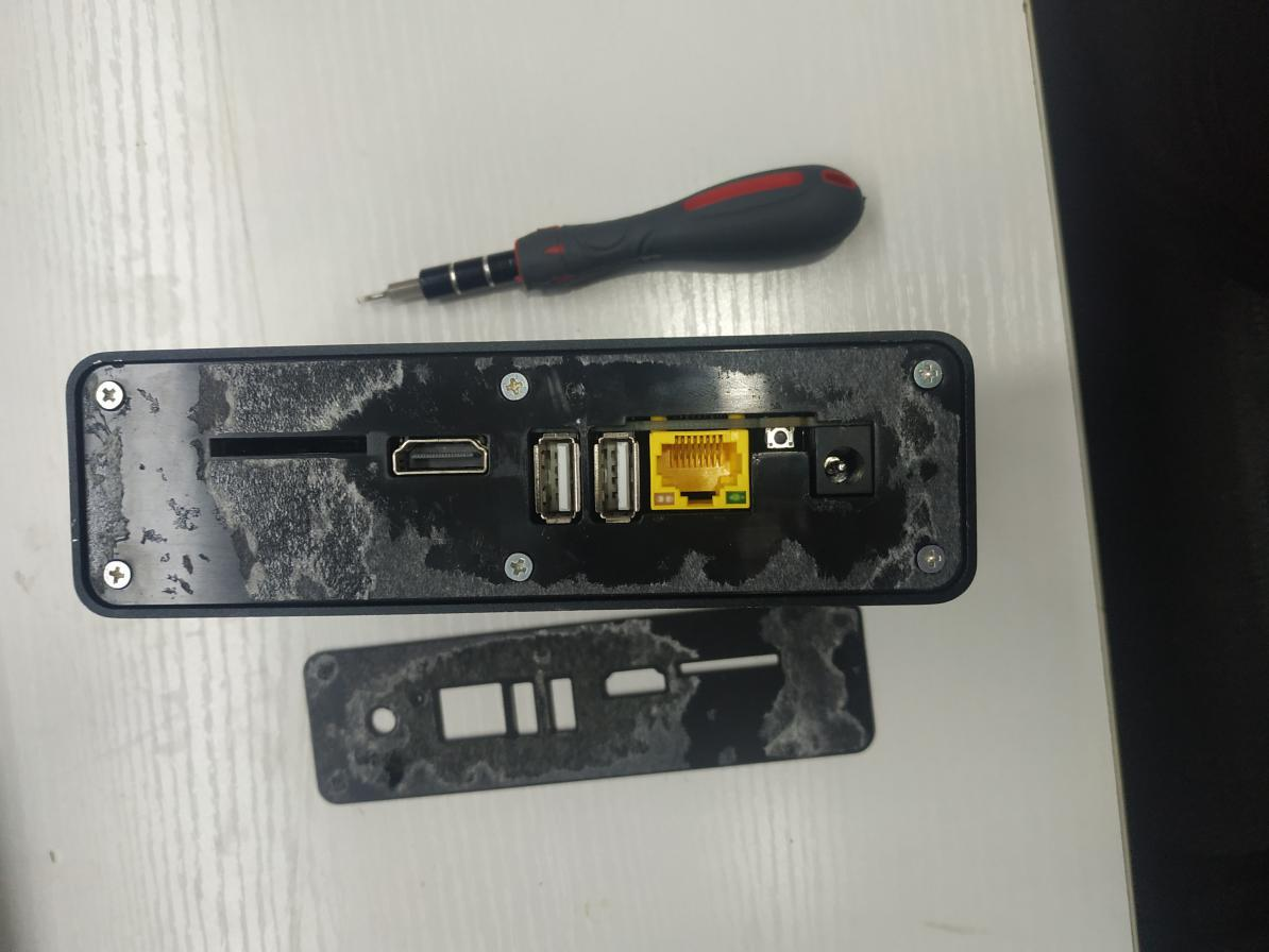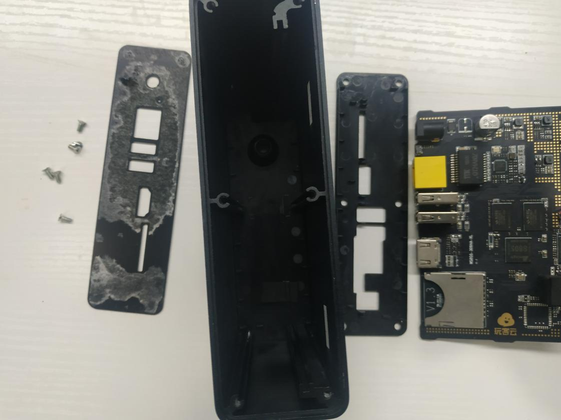 玩客云需从背面打开,背面是用胶粘的,加热或直接拆开。