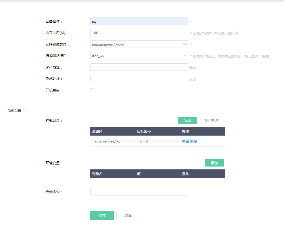 配置docker容器缓存路径,将/dockerfiles/jxy挂在到容器内/mnt。确认后保存