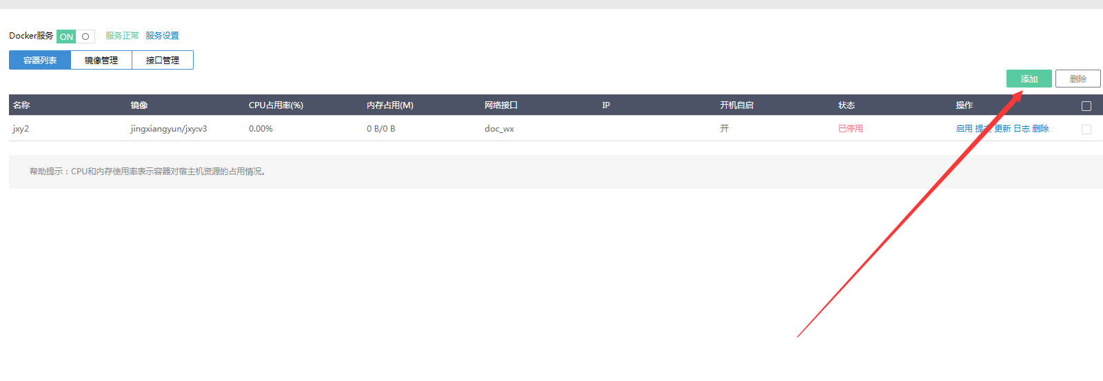 保存成功后可以在容器列表查看,点右侧启动键盘即可启动,正常运行了。