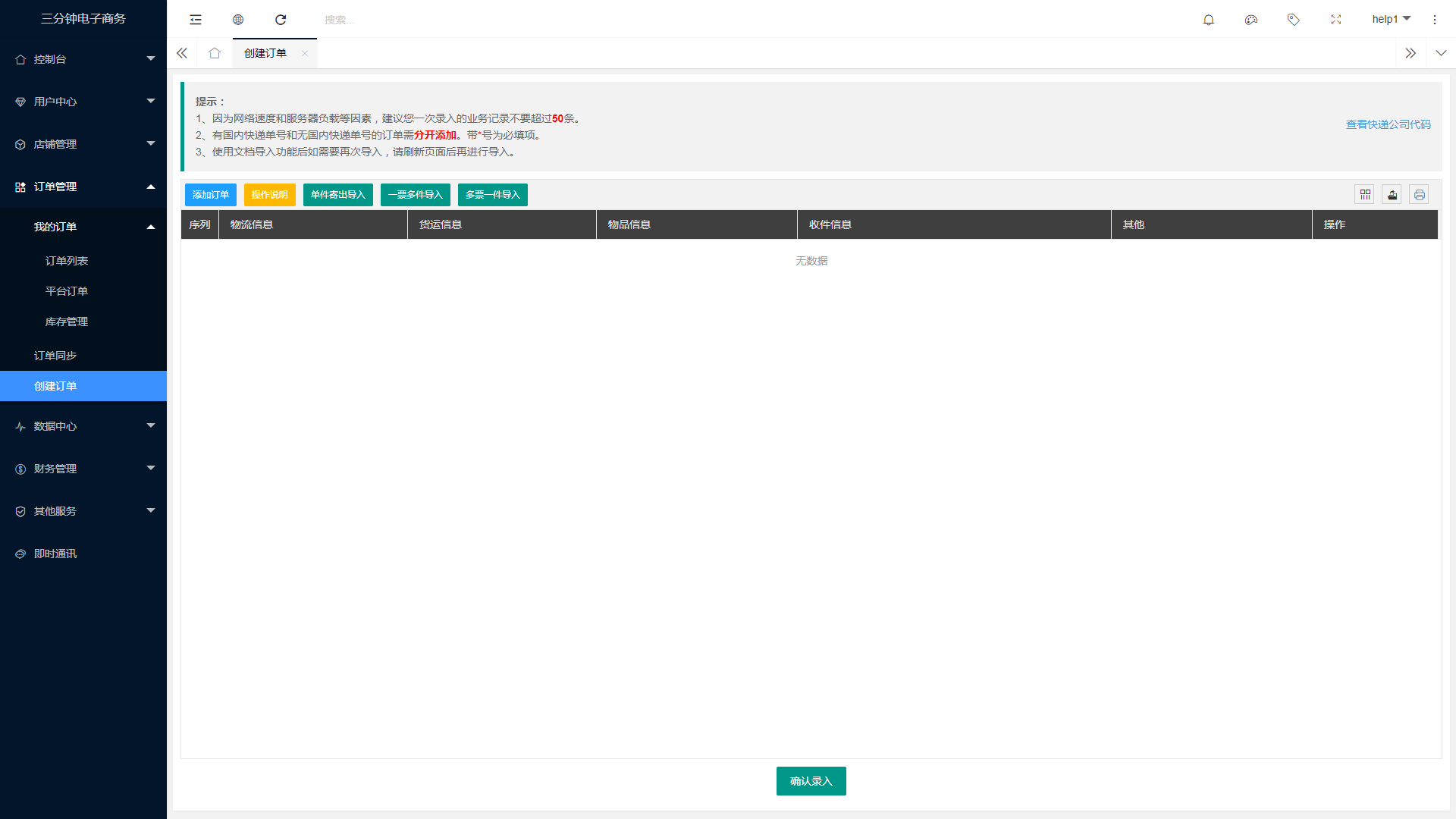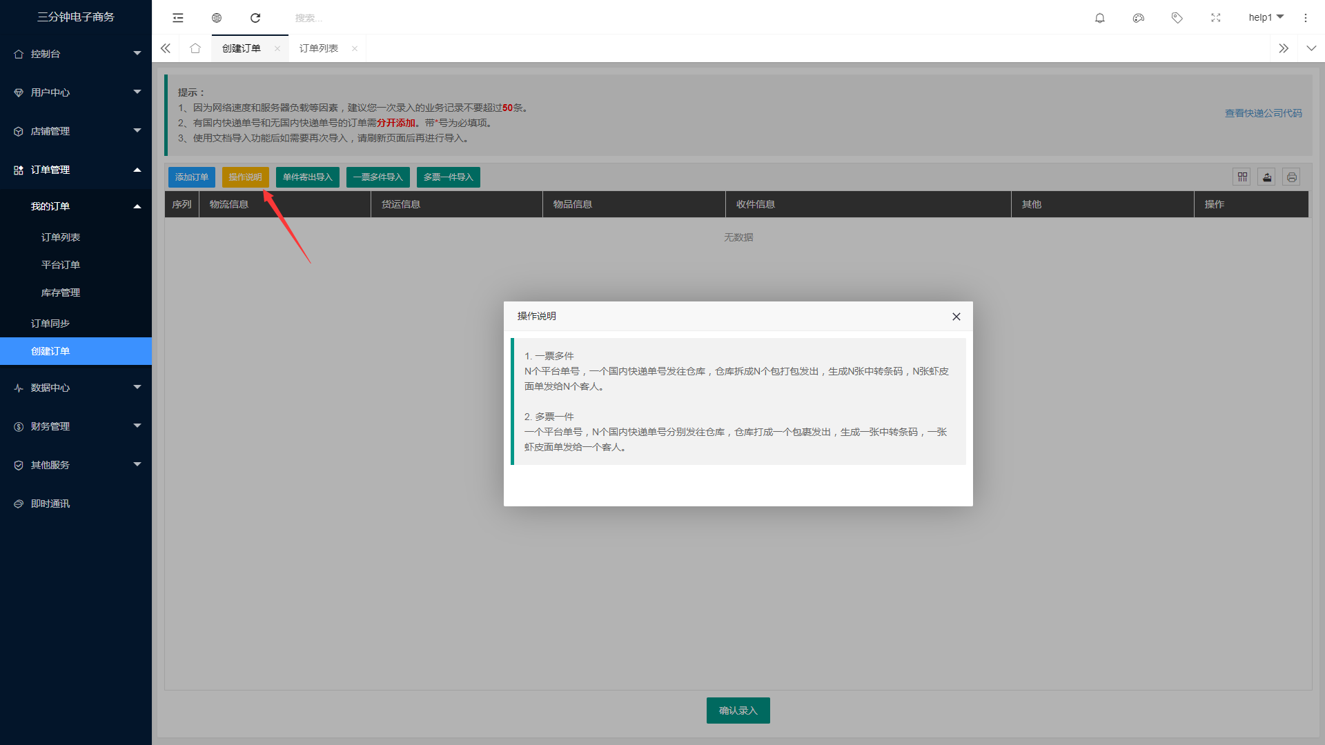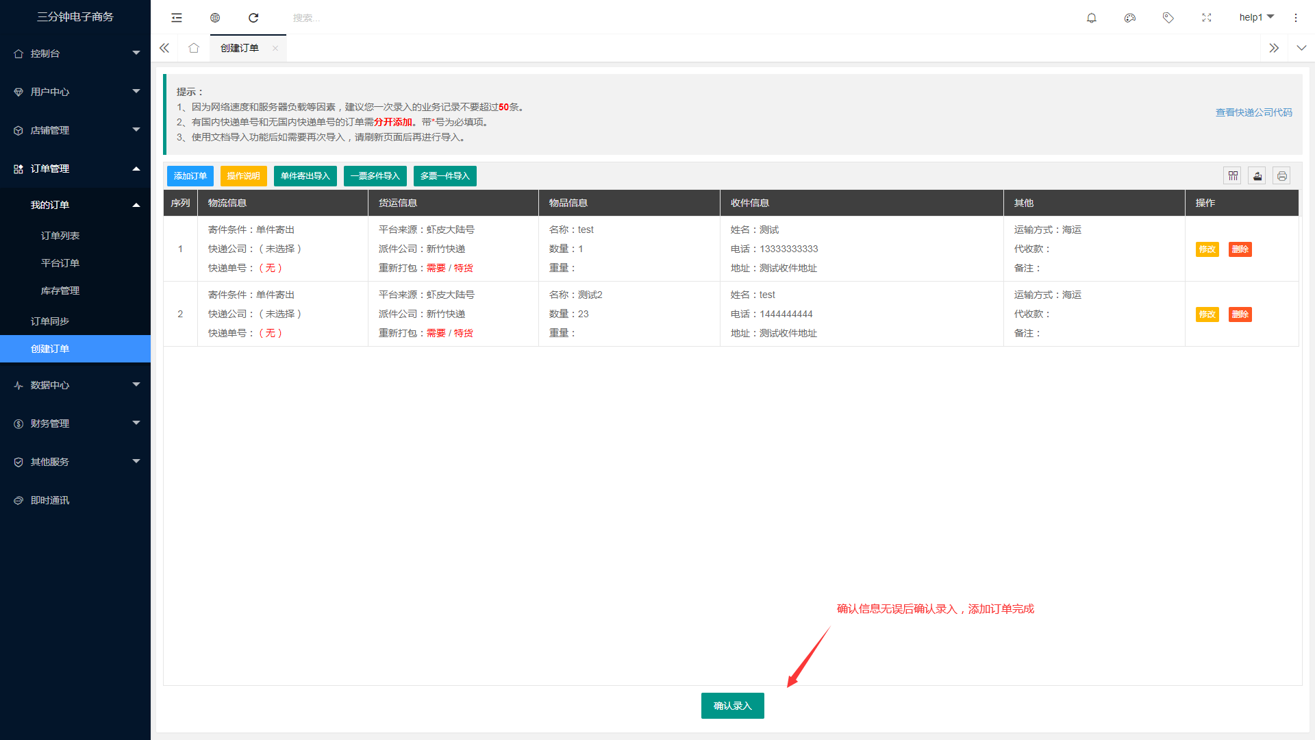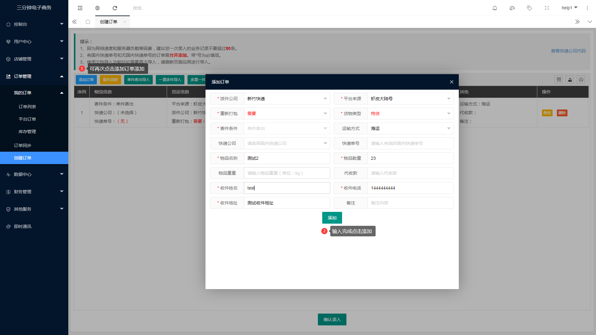 ****操作完成后可前往【订单管理-我的订单-订单列表】页面查询详细信息****