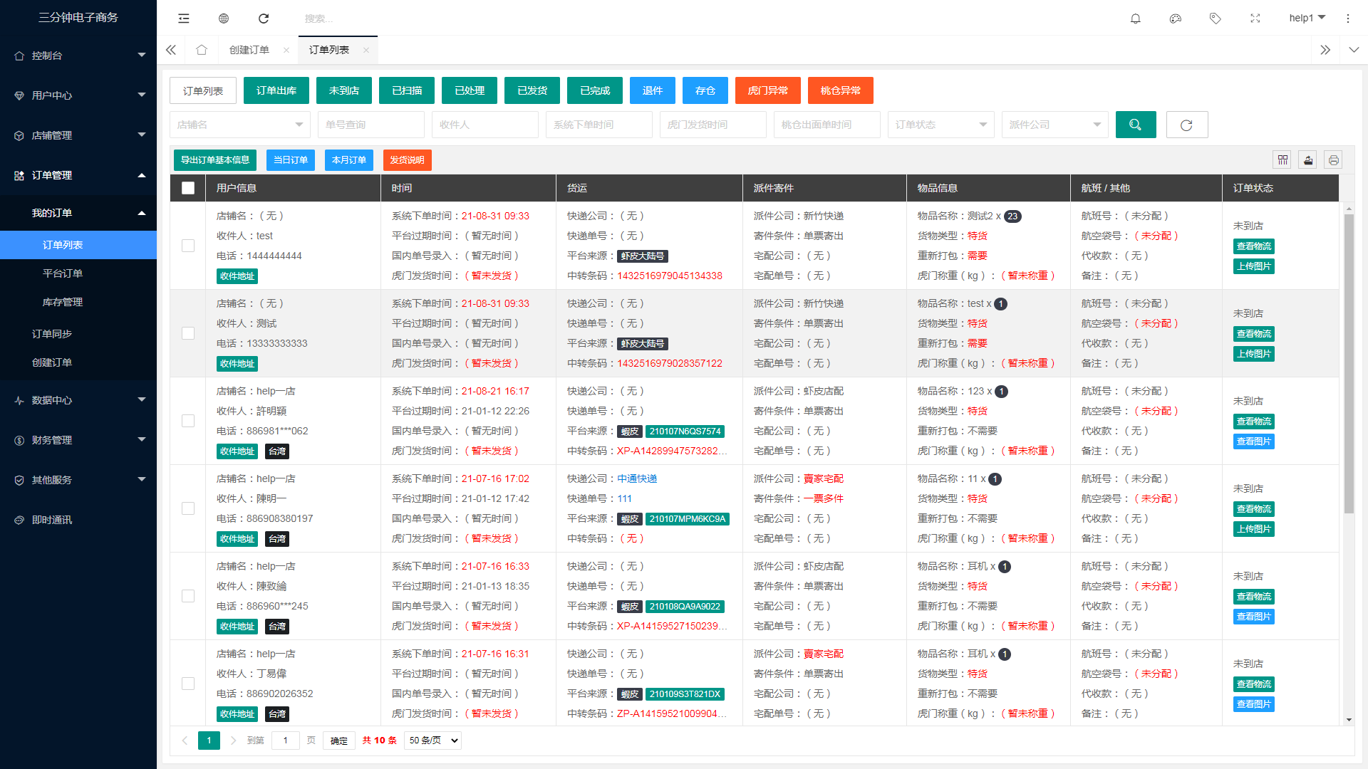 > 多票一件对应为多个国内快递单号,一个收件地址。