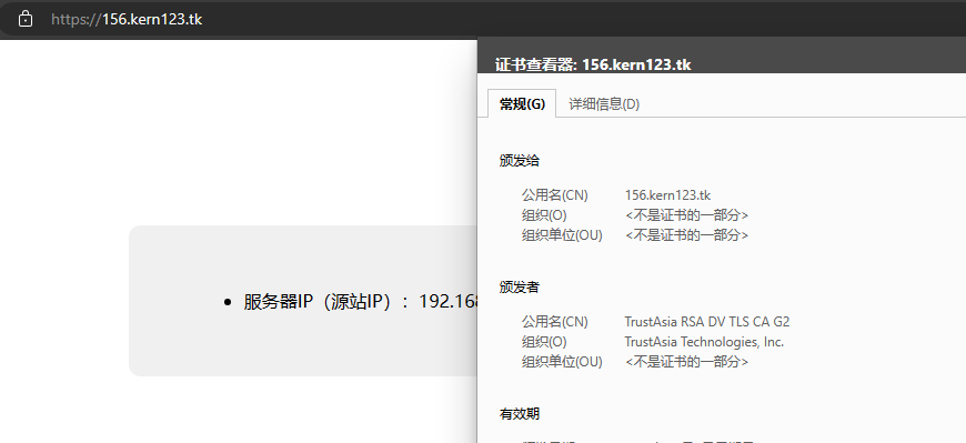 - 部署完成可以使用 **`https`** 方式访问网站 :https://156.kern123.tk