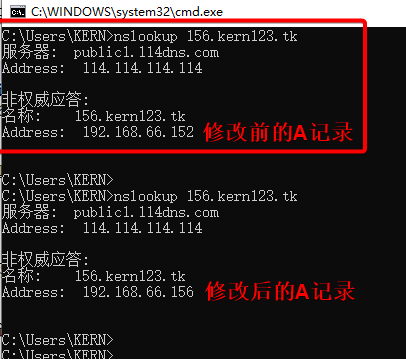>[warning] 提示:修改域名A记录需要等待1-10分钟(或更长时间)才会生效