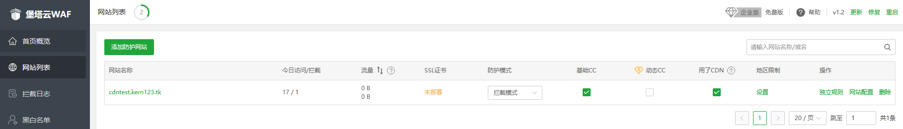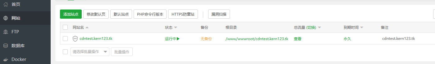 2. 网站列表 --> [cdntest.kern123.tk](http://cdntest.kern123.tk)