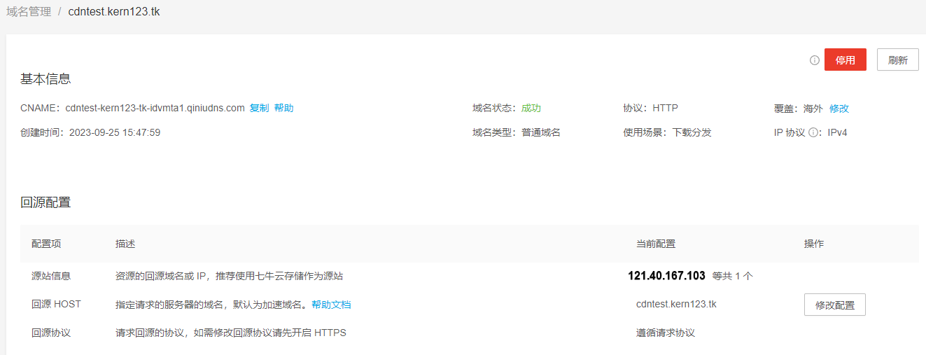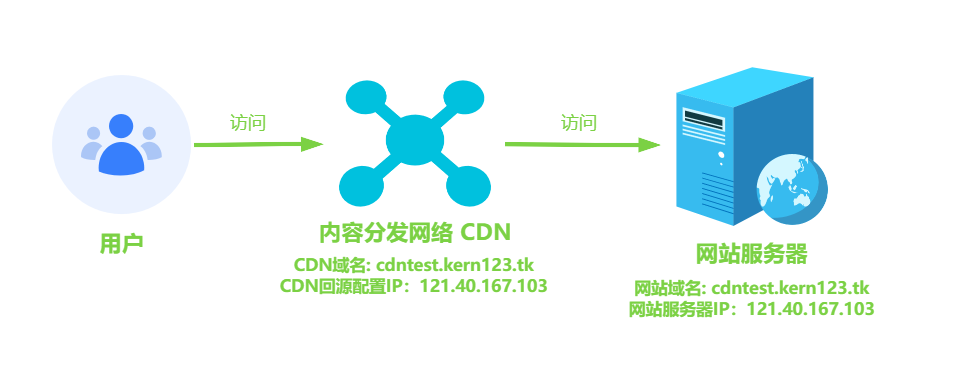 * CDN域名(加速域名)、网站服务器网站域名: [cdntest.kern123.tk](http://cdntest.kern123.tk)