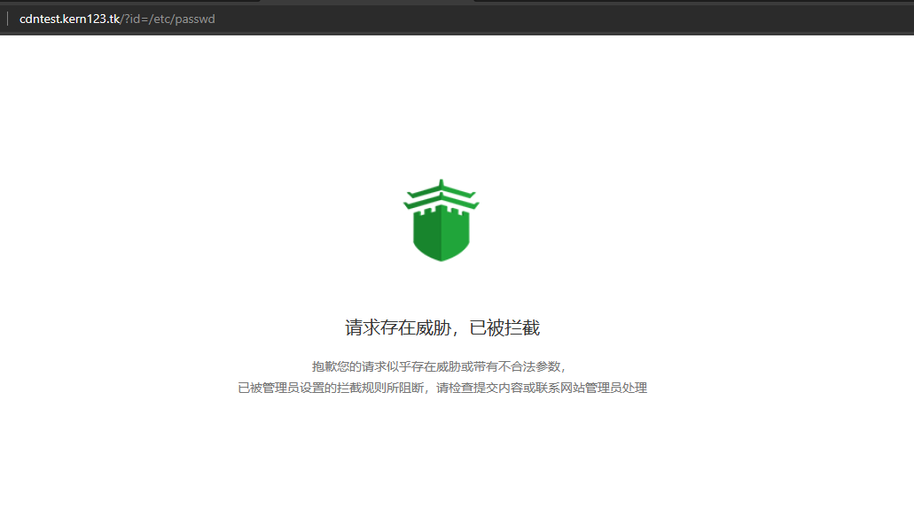 * WAF防护网站、CDN域名、网站服务器网站域名:[cdntest.kern123.tk](http://cdntest.kern123.tk)