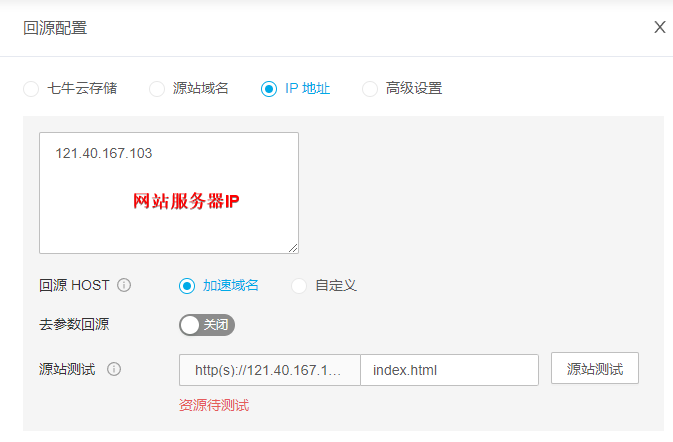 请根据您的CDN回源配置修改,教程中使用的是IP地址。