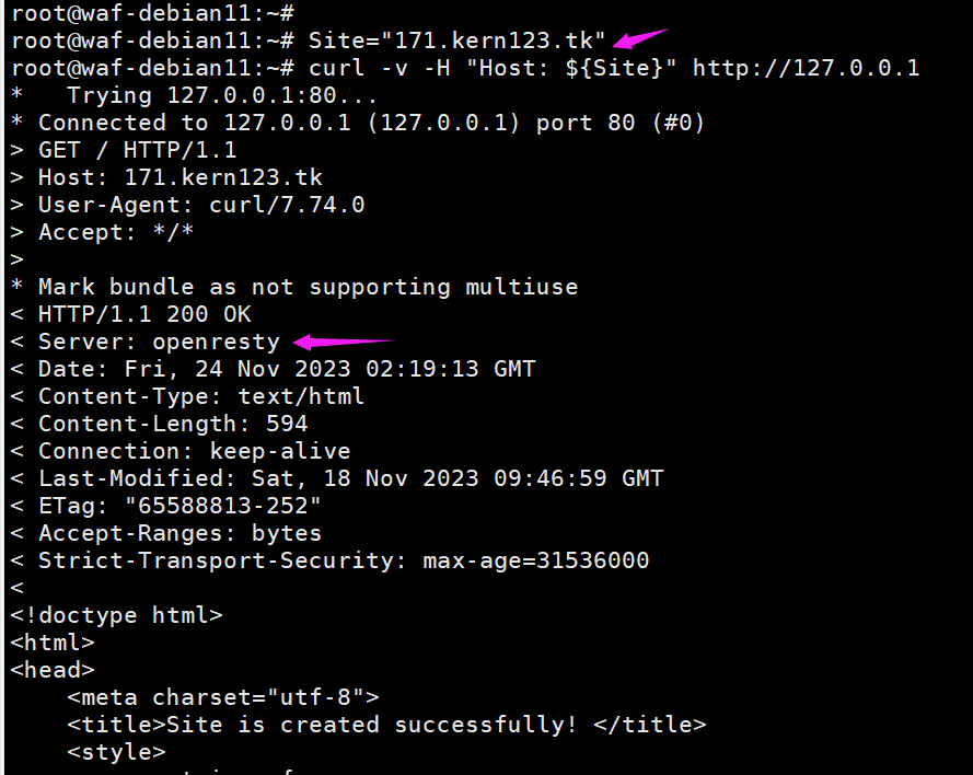 curl -v -H "Host: ${Site}" http://127.0.0.1