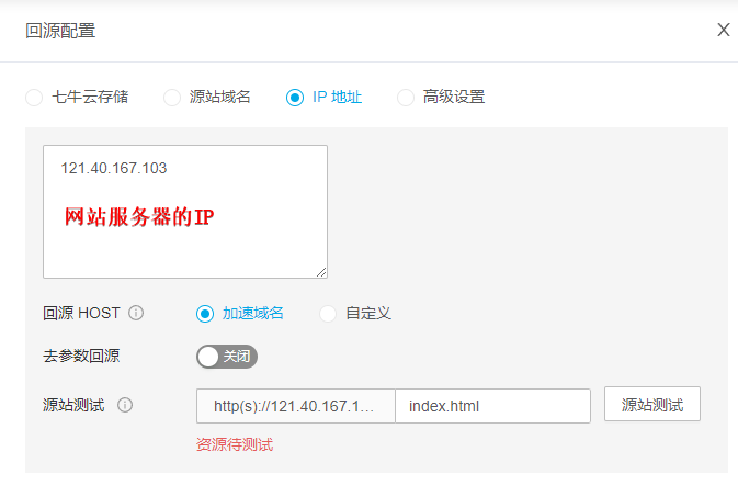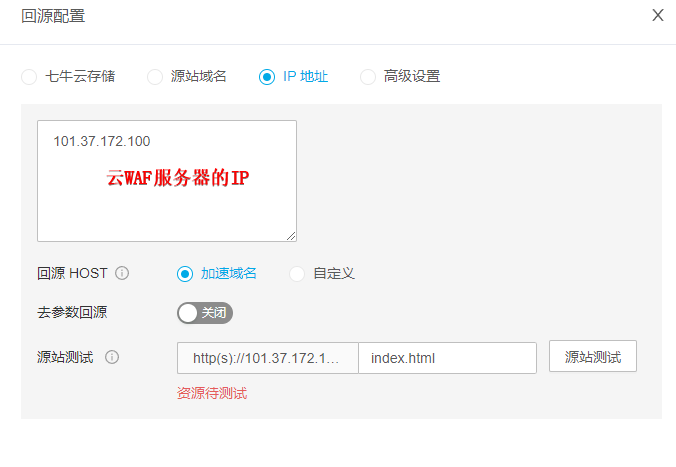 - 例如:这里使用CDN的回源配置是:IP地址
