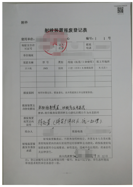 (一)填写[《射线装置报废登记表》](http://sthj.chengdu.gov.cn/cdhbj/c111044/2019-06/06/8cca827c4c274181acd29f5099764969/files/97e6c4d167664612bb079cac742b09ef.docx),射线装置在报废处置时,使用单位应当对射线装置内的高压射线管进行拆解和去功能化。