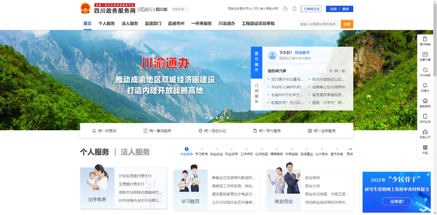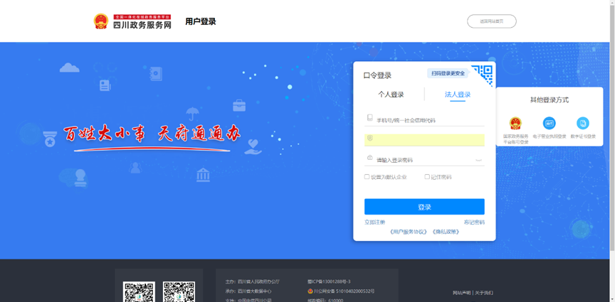 3.法人登录或注册四川政务服务网