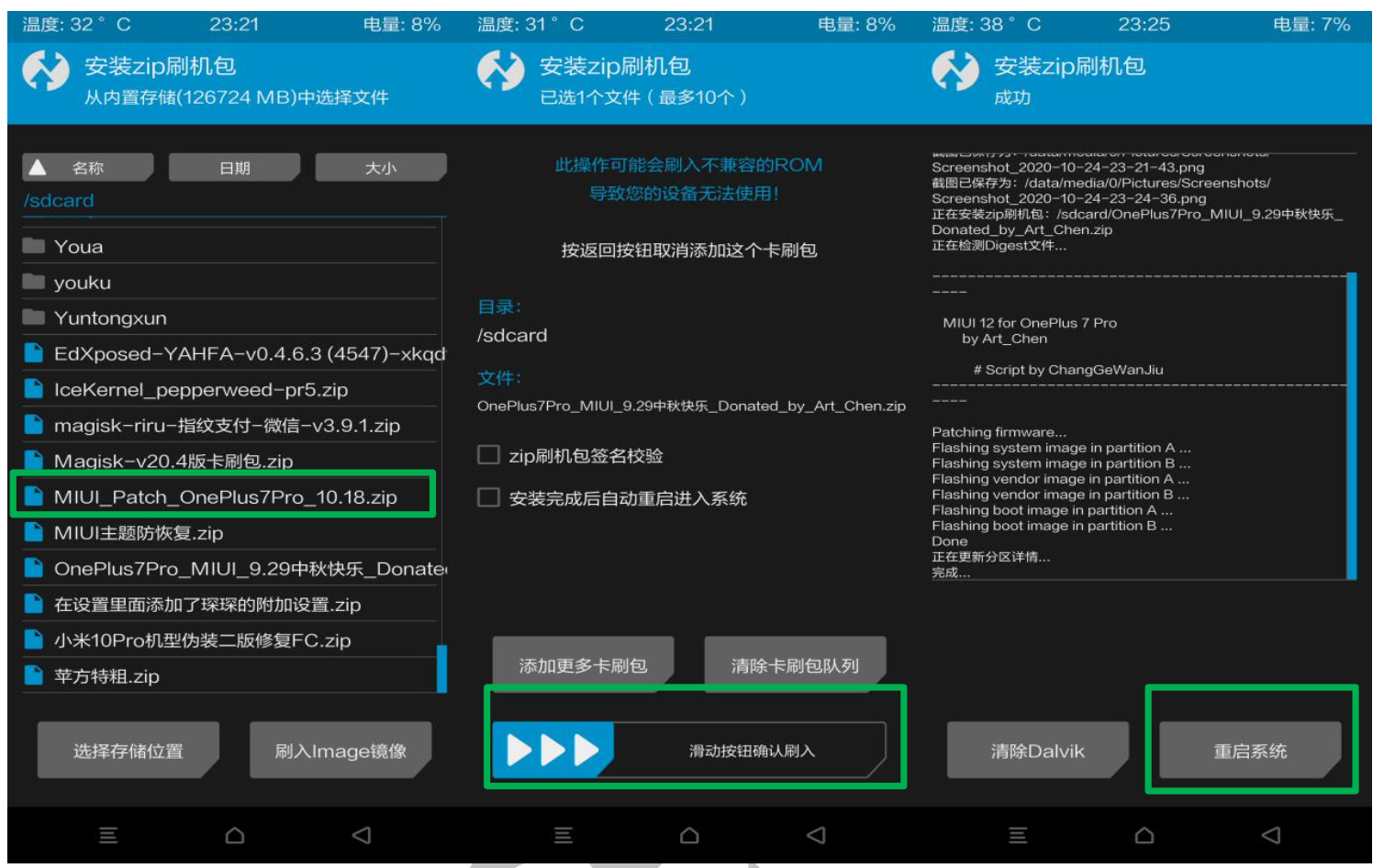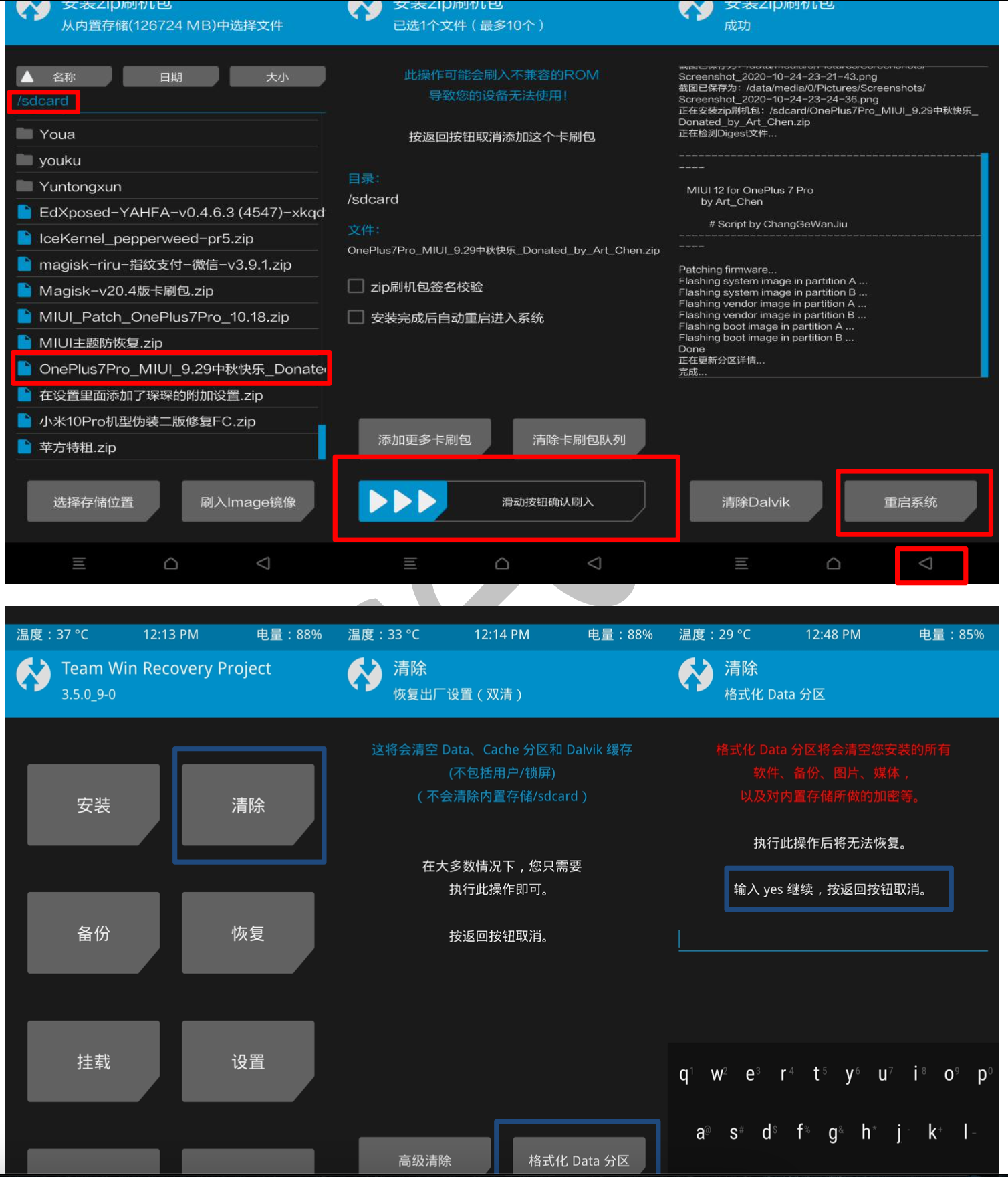 步骤为 **(双清 刷包 刷补丁 格式化 data 重启系统)**