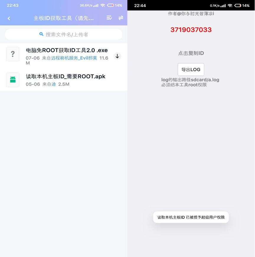 ID 的获取方式有两种 一种电脑获取 不需要手机 ROOT 一种手机上获取 需要ROOT 获取ID的软件发包群 群文件自取