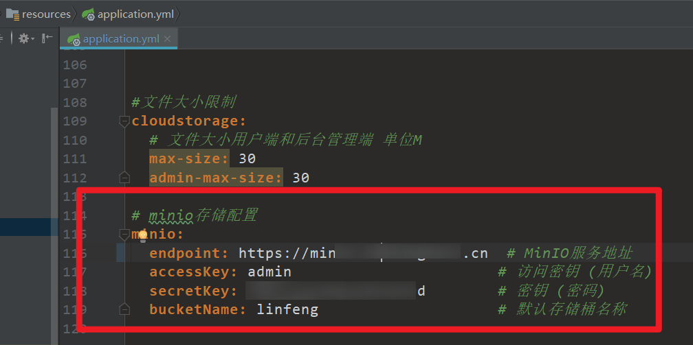 v1.21.0版本新增了minio存储。minio存储首先要在自己本地服务器搭建好,参考网上博客教程。windows本地搭建可以参考:https://blog.csdn.net/qq_43535972/article/details/146606714