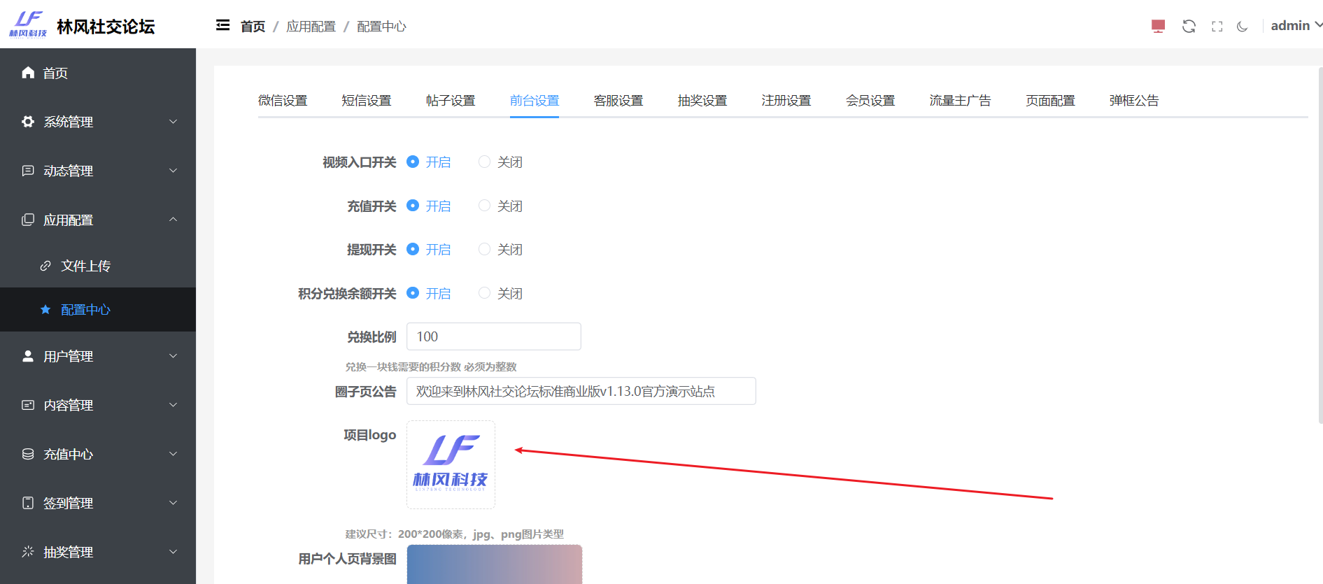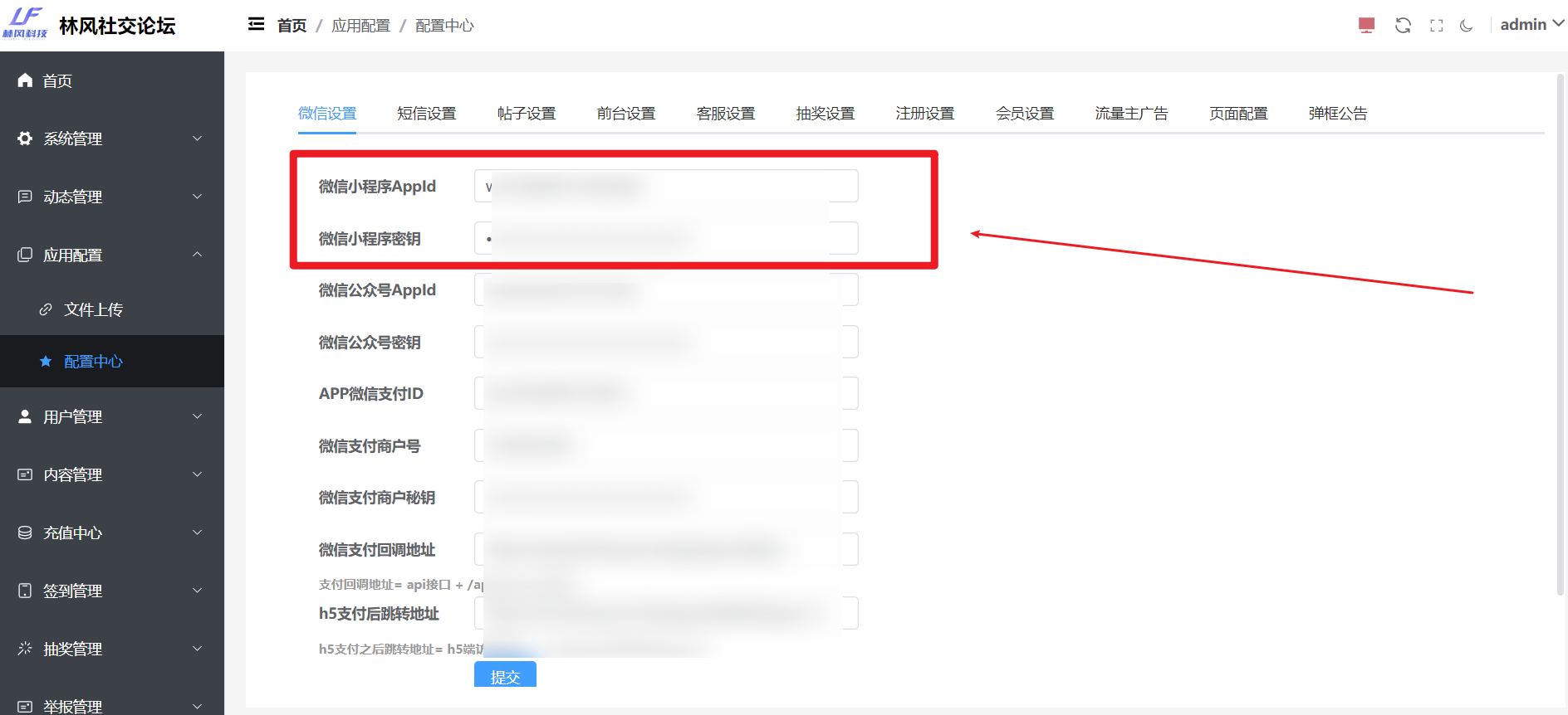 绝大部分配置都在`后台管理系统`——>`应用配置`——>`配置中心`。