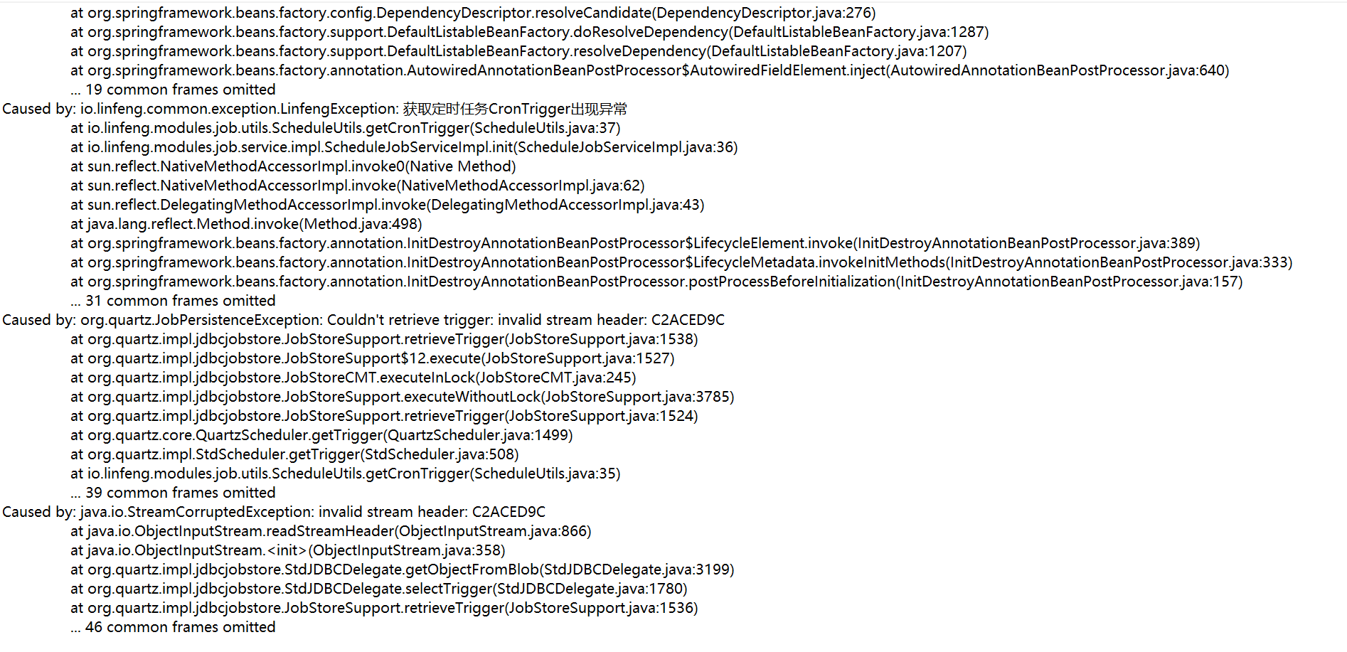 ### 3. 数据库导入或运行时报错Failure obtaining db row lock: Table 'linfengcommunity.QRTZ_LOCKS' doesn't exist